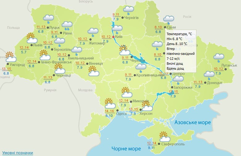 Ночью температура воздуха 5-10 градусов, днем 8-13. На Закарпатье и в южных областях 14-16 градусов.
