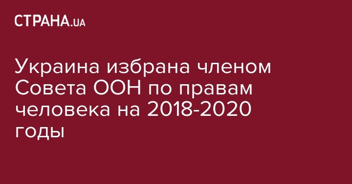 Украина избрана членом Совета Организации Объединенных Наций (ООН) по правам человека на 2018-2020 годы. Об этом говорится в сообщении постоянного представительства Украины при ООН в микроблоге Twitter.