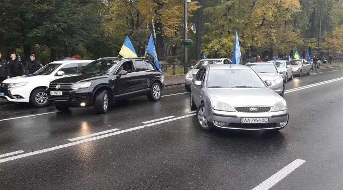 Во вторник, 17 октября, в центре Киева, в день большого митинга, полиция уже фиксирует нарушения. В частности, на углу улицы Грушевского и Крепостного переулка в правительственном квартале правоохранители заблокировали шесть машин автомайдановцев.