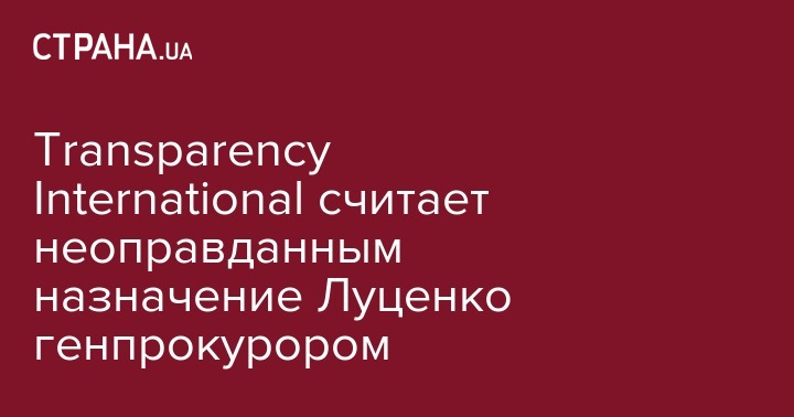 Transparency International считает неоправданным назначение Луценко генпрокурором