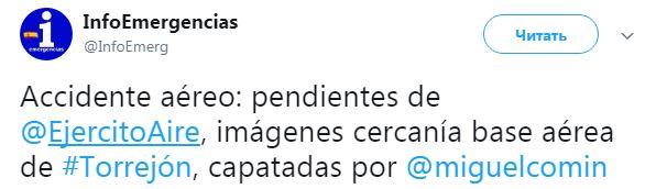 Отметим, что это не первый инцидент с крушением испанского самолета. Так, 12 октября в испанском Альбасете разбился истребитель, летевший на базу после воздушного парада.