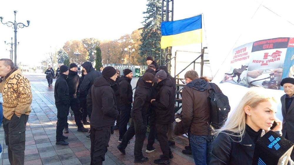 Сегодня, 18 октября, наряды полицейских вынесли к Верховной Раде, где второй день проходит митинг, громкоговорители. Об этом сообщает корреспондент "Страны".