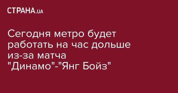 Сегодня метро будет работать на час дольше из-за матча "Динамо"-"Янг Бойз"