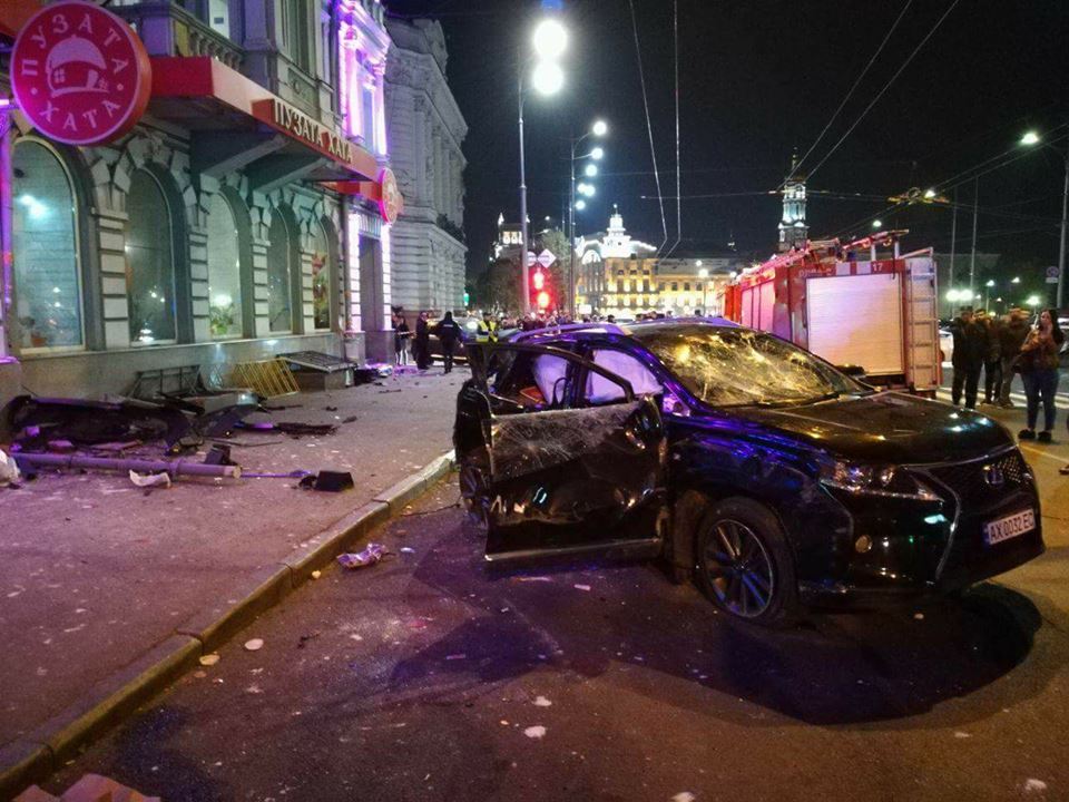"В результате столкновения Lexus вылетел на тротуар ул.Сумская и совершил наезд на 11 пешеходов, 5 из которых погибли на месте (4 девушки и молодой парень), остальные были доставлены в медучреждения", - говорится в заявлении силовиков.