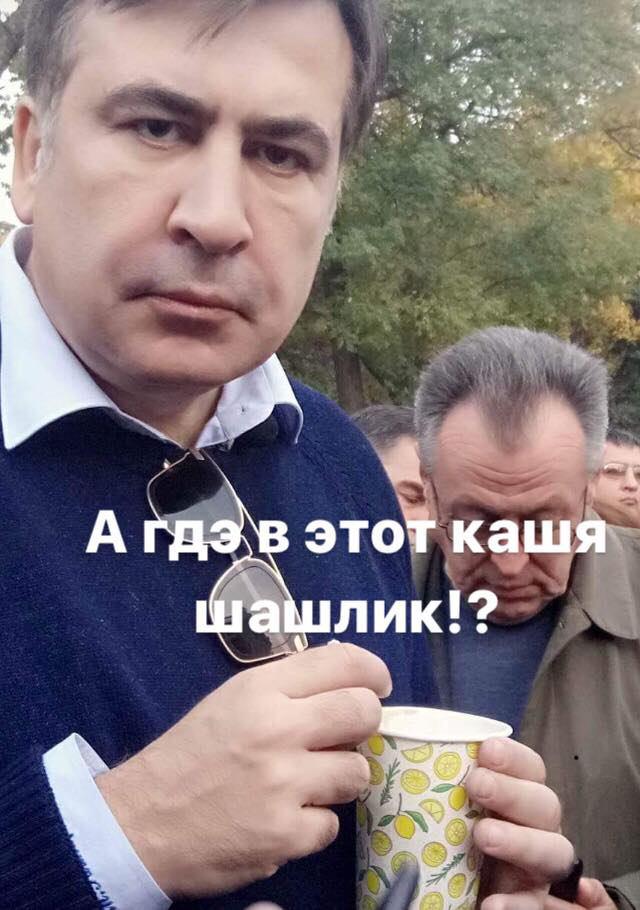 17:00 Начали скандировать "Порох х...ло!". Полиция с удивлением слушает. Саакашвили в это время ест суп из общего котла.