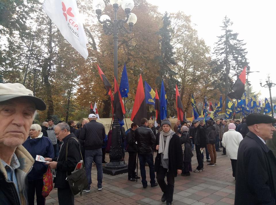 Нардеп-комбат Семен Семенченко попросил оставить только красно-чёрные и желто-синие стяги, что бы акцентировать внимание на том, что объединяет протестующих.