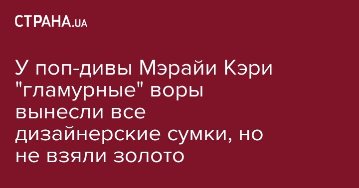 Известную американскую поп-звезду Мэрайю Кэри ограбили "модные" злоумыленники. В лос-анджелесский особняк 48-летней дивы ночью вломились воры, которые вынесли оттуда принадлежащие ей дизайнерские сумочки и солнечные очки на общую сумму 50 тысяч долларов, пишет TMZ.