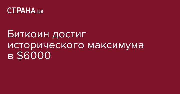 Цена криптовалюты биткоина превысила значение $6000 за монету, продолжая устанавливать исторические максимумы, пишет "Лига".