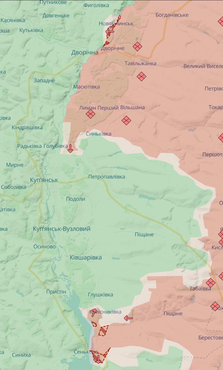 13.45 Россияне существенно продвинулись на нескольких направлениях в Донецкой и Харьковской областях, свидетельствует карта Deep State.
