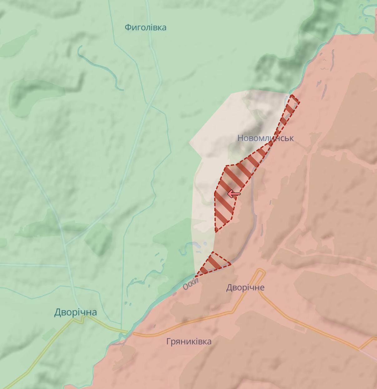 На севере, в Харьковской области, россияне продвинулись в Кругляковке на юг, а также расширили свой плацдарм на левом берегу реки Оскол севернее Двуречной.