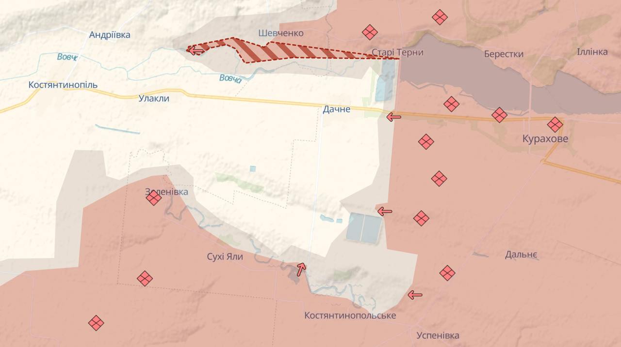 Карта Deep State пока лишь показывает небольшой участок на севере села под контролем РФ, однако остальная его часть уже находится в серой зоне.
