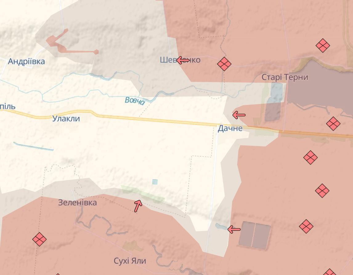 Судя по карте, россияне сумели закрепиться на нескольких улицах на восточной окраине села, которое находится около трассы Запорожье - Курахово.