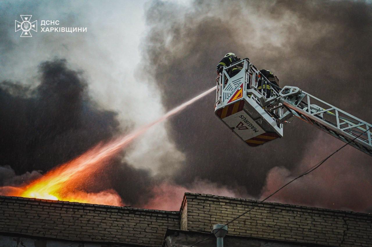 9.18 Утренние кадры последствий атаки дрона по предприятию и складу в Харькове.