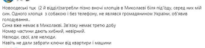 17.09 В Николаеве ТЦК задержали у подъезда молодых людей вместе с собакой, сообщают местные паблики со ссылкой на мать одного из задержанных, местную чиновницу.