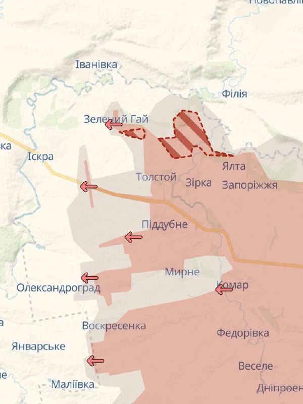 15.15 Армия РФ продвинулась у границы Днепропетровской области в районе Новохатского, серая зона подошла непосредственно к админгранице региона, свидетельствует карта Deep State.