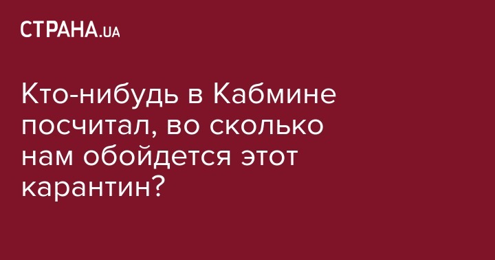 КТО-ТО В КАБМИНЕ Д.ШМЫГАЛЯ ПОСЧИТАЛ, ВО СКОЛЬКО НАМ, НАЛОГОПЛАТЕЛЬЩИКАМ, ОБОЙДЕТСЯ ЭТОТ КАРАНТИН?