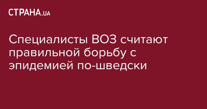 Д-р Майкл Райан (Michael Ryan), Исполнительный директор Программы ВОЗ по чрезвычайным ситуациям в области здравоохранения заявил, что Шведская модель действий может стать образцом будущего для борьбы с инфекцией (!)