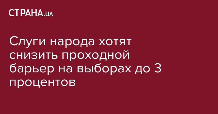 Народный депутат от "Слуги народа" Александр Качура сообщил о регистрации законопроекта № 3452, который поддержит партийный плюрализм. Согласно нему, проходной барьер в Верховную Раду и местные советы по общегосударственному округу будет снижен до 3%; также будет снижен до 3% порог и для государственного финансирования партий.