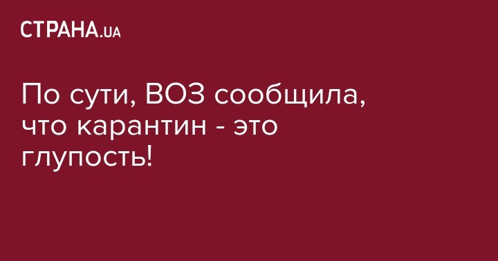 Хочу всех приободрить и поздравить власти... по сути, ВОЗ сообщила, что карантин - это ДУРОСТЬ! Лохов развели.