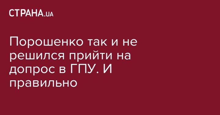 Президент Украины Порошенко так и не решился на комфортный пиар, визит-допрос в ГПУ о трагедии Майдана. Правильно сделал. Ведь его показания не совпадут с другими свидетелями Майдана.Что потом делать, когда власть закончится.