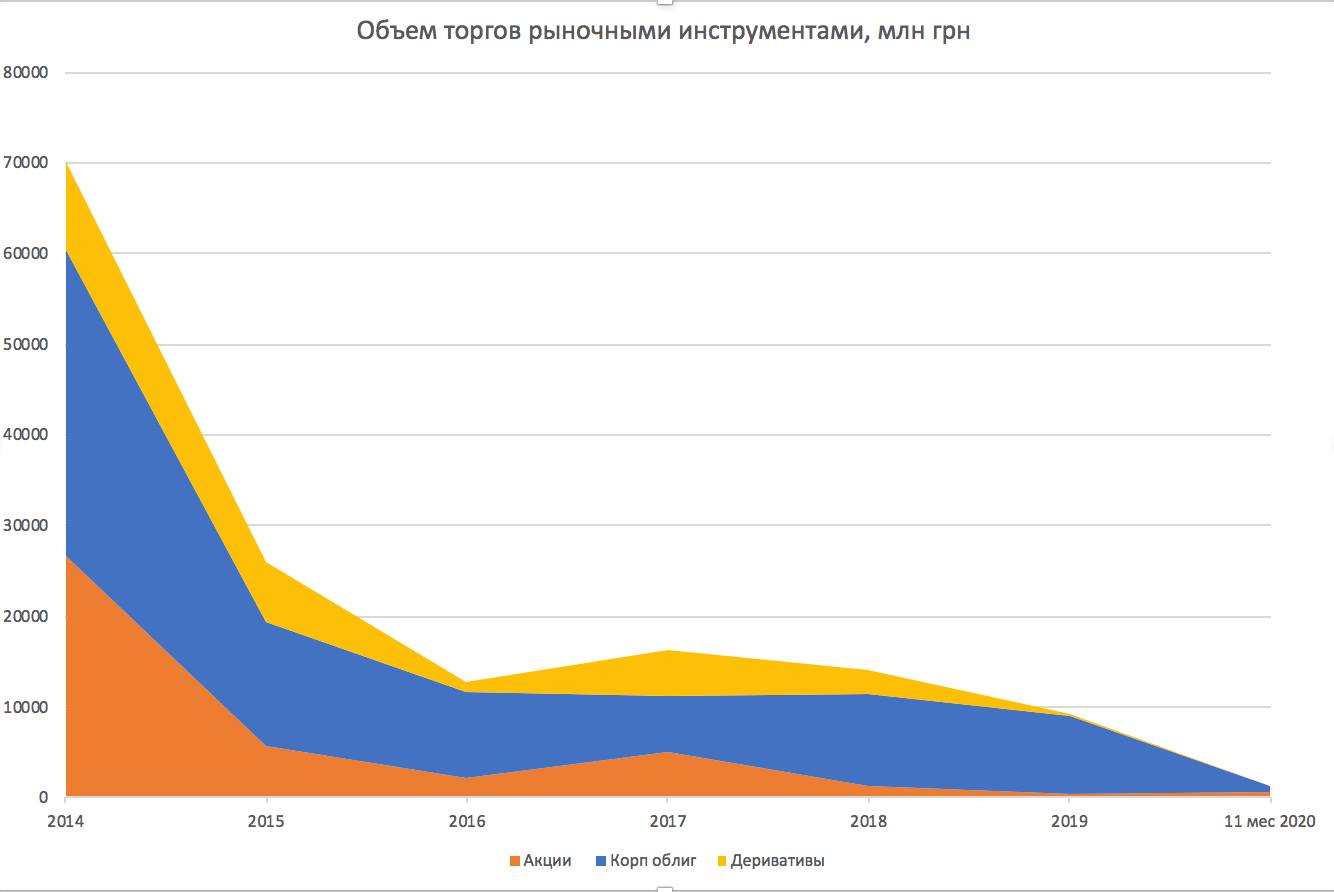 - Объем торгов на организованном рынке сократился с 629 млрд грн до 282 млрд грн