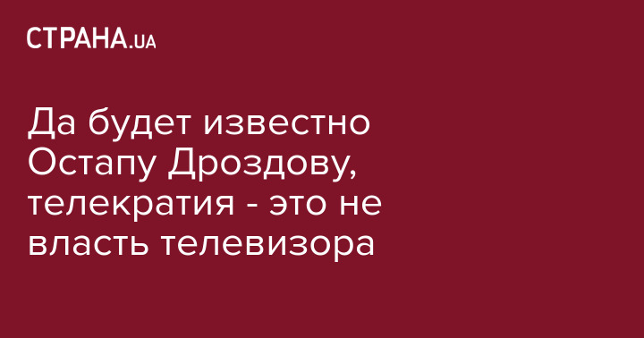 Остап Дроздов розмірковує про «телекратію» (в його трактуванні - «влада телевізора»). Вочевидь, він і не здогадується, наскільки цей термін відповідає справжньому стану речей в сучасній Україні. Адже слово «теле» (τῆλε) грецькою означає «далеко».