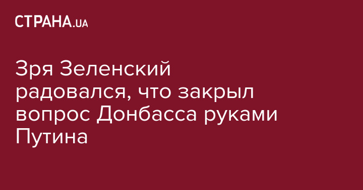Короче, рано вчера Зеленский "пил шампанское", надеясь, что закрыл вопрос Донбасса руками Путина. Скорее - наоборот. Вчера был открыт "ящик Пандоры" для Киева и режима Зеленского.