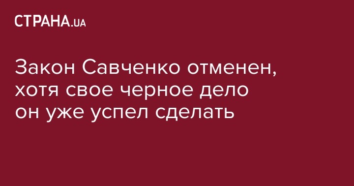 Очень вовремя Президент подписал отмену закона Савченко, который сам же до того и ввёл в действие на основании голосования собственной парламентской фракции.