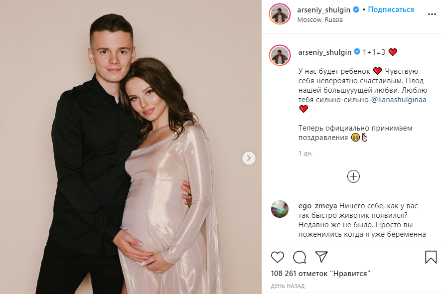 Будущий отец опубликовал в соцсети фотосессию, где он позировал вместе со своей супругой Лианой. Судя по фото, она уже на большом сроке беременности.