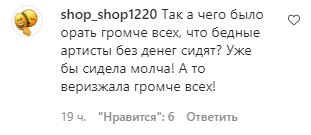"Так а чего было орать громче всех, что бедные артисты сидят без денег? Уже бы сидела молча! А то веризжала громче всех", - пишут в комментариях.