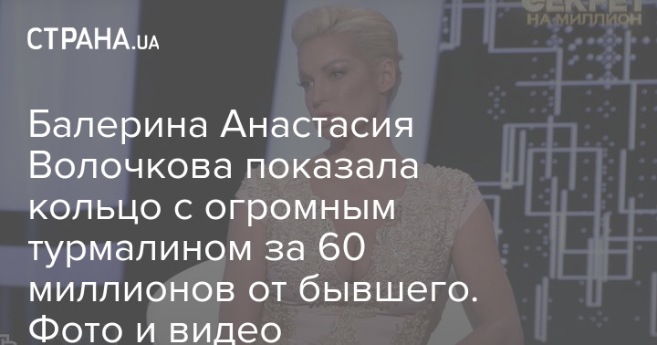 Российская балерина Анастасия Волочкова появилась на съемках шоу "Секрет на миллион" с шикарным кольцом на руке. По ее словам, ювелирное украшение стоит 60 миллионов рублей (более 22 млн грн).