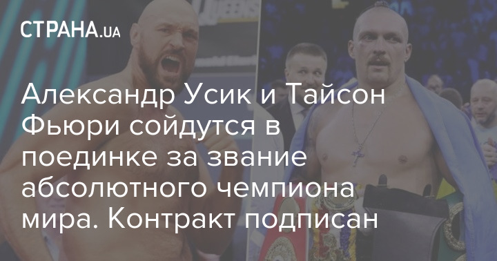 Украинец Александр Усик и британец Тайсон Фьюри подписали контракт на бой за звание абсолютного чемпиона мира по боксу в тяжелом весе.