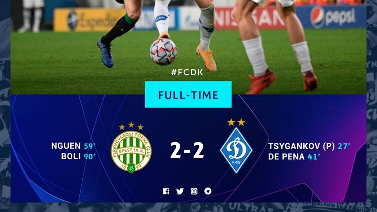 Таким образом динамовцы и "Ференцварош" набирают по одному баллу, что позволяет "Динамо" благодаря лучшей разнице забитых и пропущенных остаться на 3-м месте в группе.