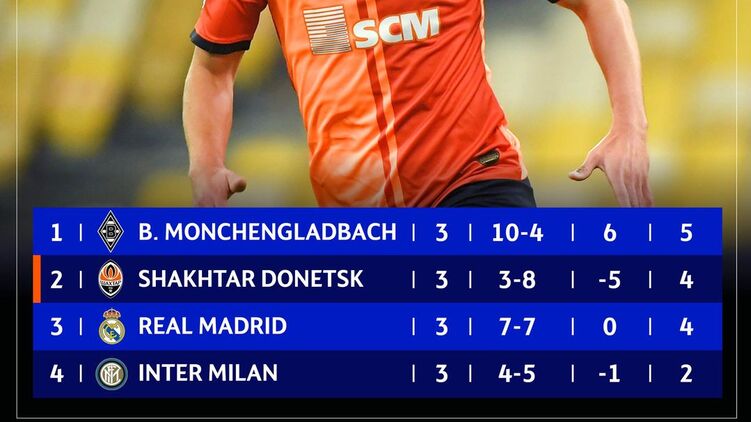 Благодаря этой победе "Реала", футболисты "Шахтёра", которые разгромно проиграли на свое поле "Боруссии" из Менхенгладбаха, после трех туров занимают проходное, второе место.