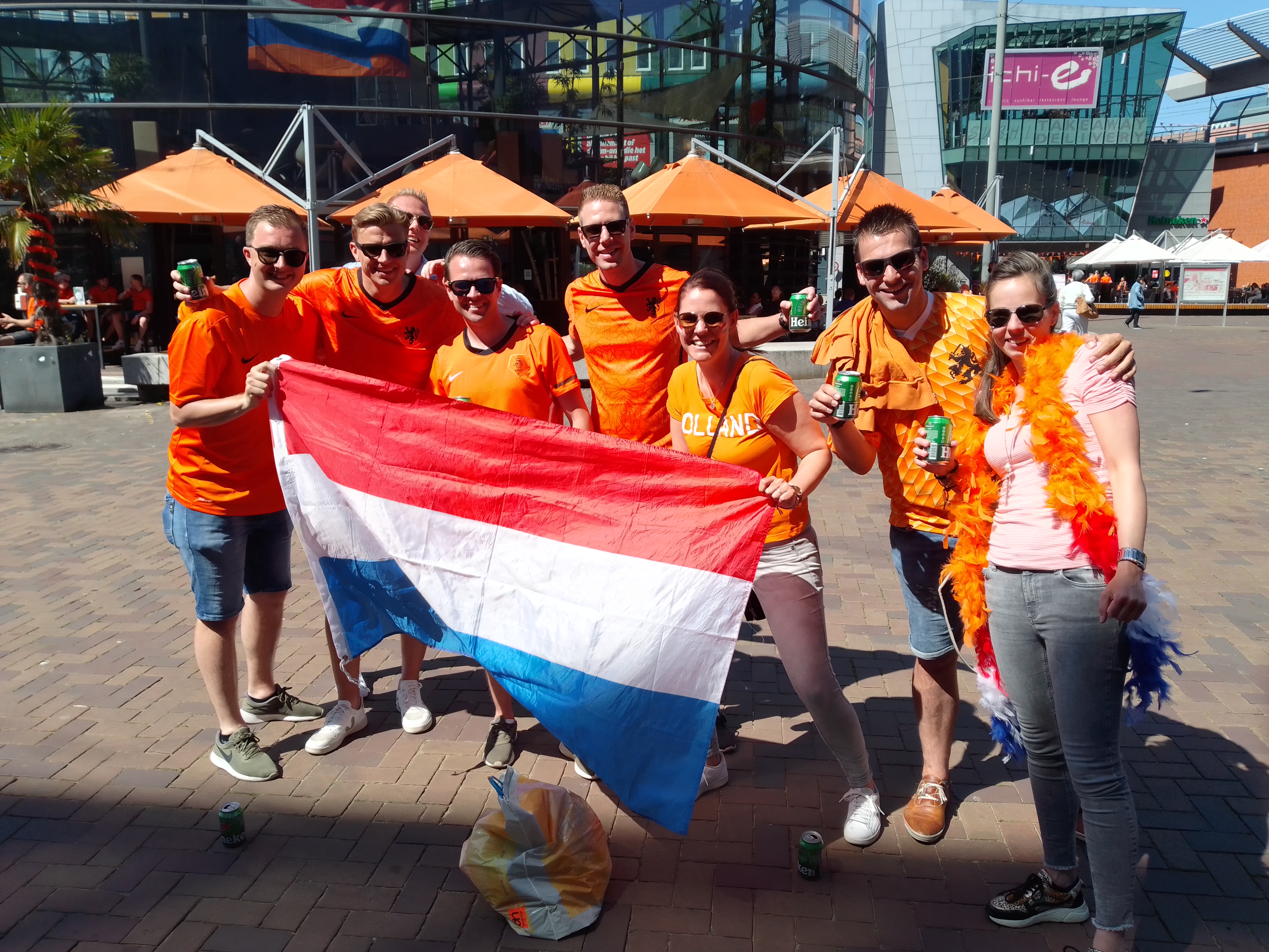 23:56 После финального свистка под оглушительный шум "оранжевого моря" трибун игроки сборной Нидерландов прошли круг почета, благодаря болельщиков. Но и наших любителей футбола, сумевших несмотря ни на что добраться до Амстердама, тоже было очень хорошо слышно. Их было несколько сотен, против примерно 15 000..