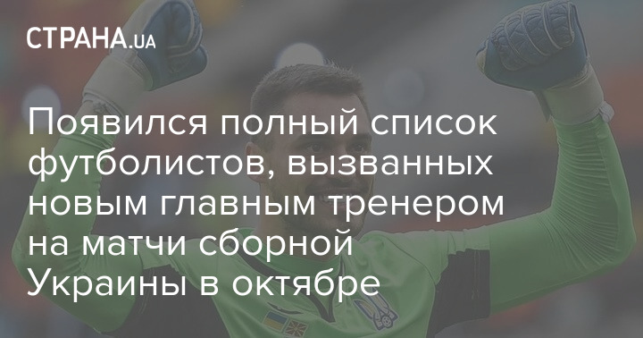 Состав сборной Украины, который будет готовиться к двум октябрьским матчам отбора ЧМ-2022 против Финляндии (9 октября, Хельсинки) и Боснии и Герцеговины (12 октября, Львов) состоит из 26-ти человек: