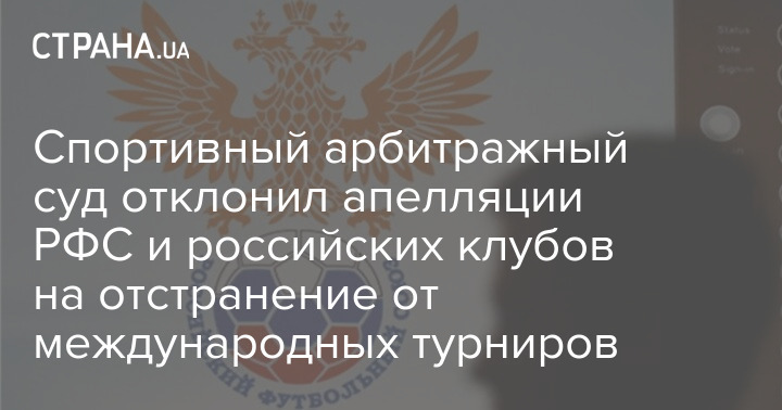 Спортивный арбитражный суд (CAS) не удовлетворил апелляции Российского футбольного союза (РФС), а также российских клубов на отстранение от международных турниров.