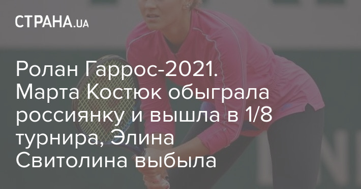 Украинская теннисистка Марта Костюк прошла в 1/8 финала Открытого чемпионата Франции по теннису ("Ролан Гаррос"). При этом другая представительница Украины Элина Свитолина выбыла из этих соревнований.