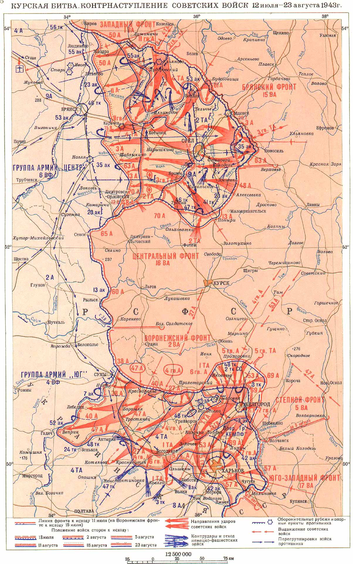 Тому фюрер ухопився за пропозицію Генштабу, яка кидалася в очі при першому ж погляді на карту: зрізати Курський виступ ударами, що сходяться з півдня, з боку Харкова і Бєлгорода, і з півночі, з боку Орла, після чого розвинути наступ у бік Москви.