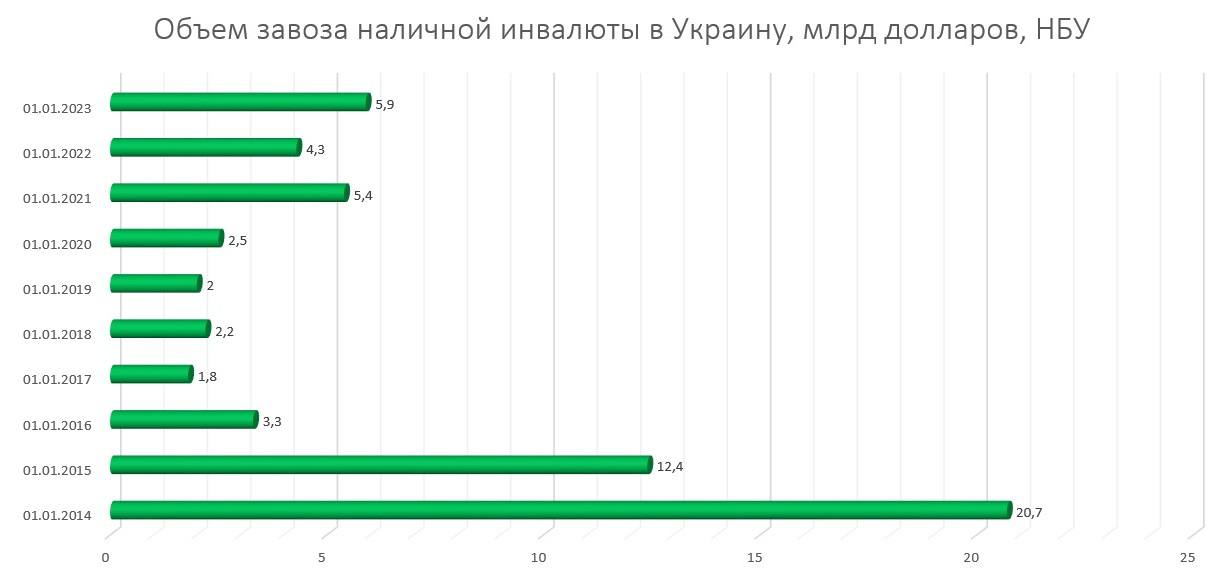 Якщо банки продовжать ввозити готівкову інвалюту в такому ж темпі, то за підсумками 2023 року поставлять у країну $9,7 млрд — у 1,6 разів більше, ніж 2022-го.