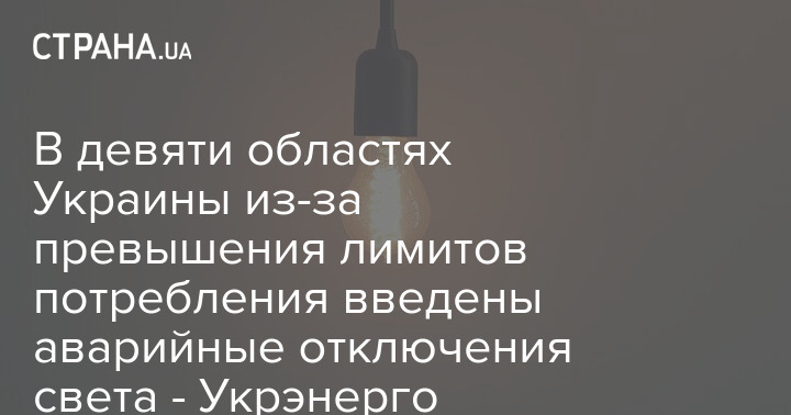 Вранці у четвер, 12 січня, у дев'яти областях України перевищено ліміти споживання, через що там запроваджуються аварійні відключення електрики.