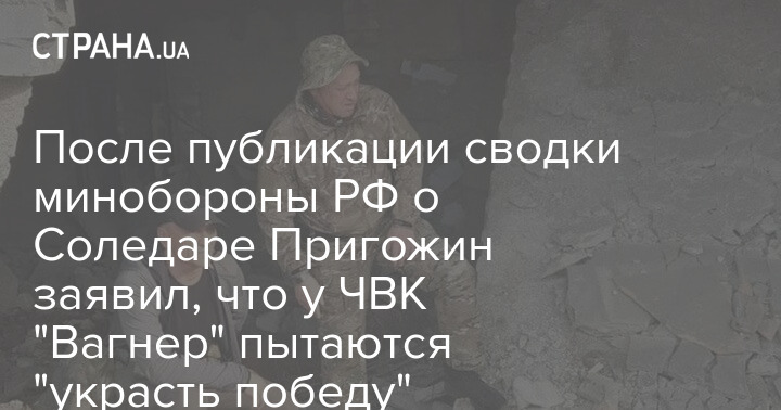 Після публікації зведення міноборони РФ про Соледар Пригожин заявив, що у ПВК "Вагнера" намагаються "вкрасти перемогу"