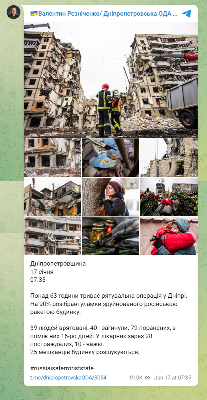 Нагадаємо, за даними місцевої влади, внаслідок ракетного удару по багатоповерхівці у Дніпрі 236 квартир повністю зруйновано.