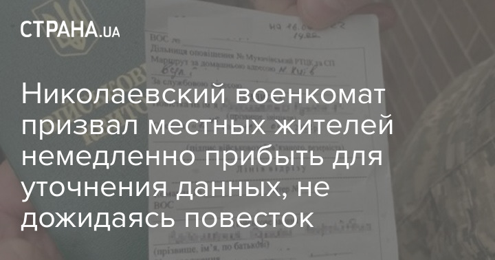 Миколаївський обласний військкомат закликав місцевих жителів чоловічої статі віком від 18 до 60 років не чекати на повістки, а "негайно прибути для уточнення облікових даних до територіального центру комплектації та соцпідтримки".