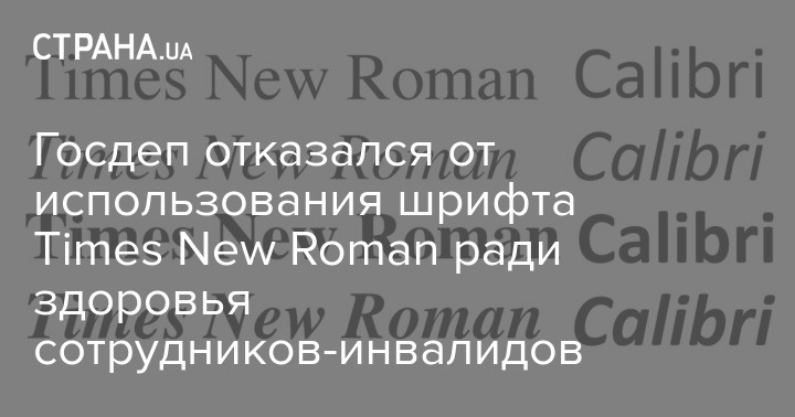 Держдепартамент США відмовляється від використання шрифту Times New Roman через те, що його декоративні елементи ускладнюють сприйняття співробітників з обмеженими можливостями. У відомстві його замінять на шрифт без засічок Calibri.