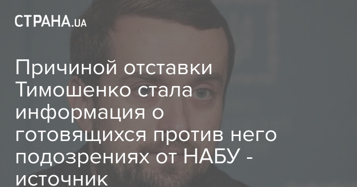 Причиною відставки Тимошенка стала інформація про підготовку проти нього підозр від НАБУ - джерело