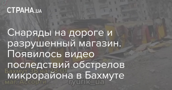 На відео можна побачити повністю зруйнований магазин після обстрілу. На дорозі лежать снаряди.