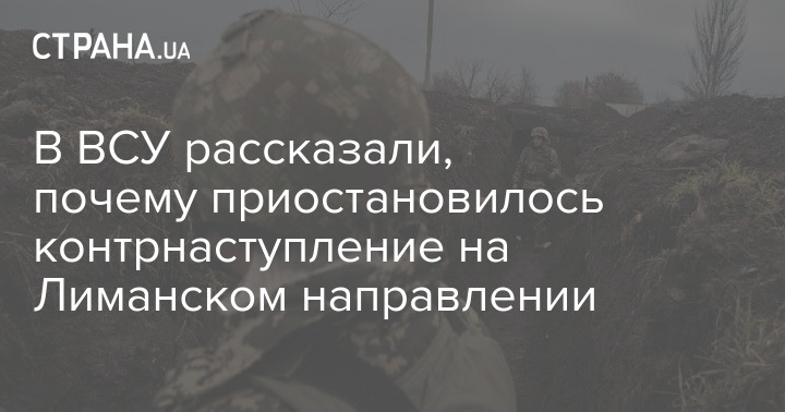 В ЗСУ повідомили причини, через які український контрнаступ на Лиманському напрямі припинився.
