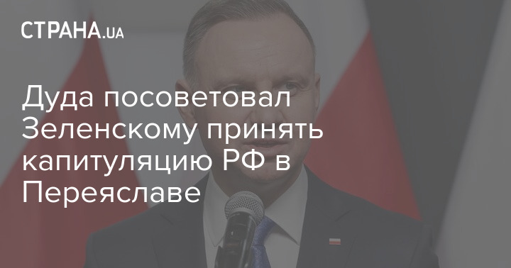 Президент Польщі Анджей Дуда порадив українському колегі Володимиру Зеленському ухвалити капітуляцію Росії у Переяславі.