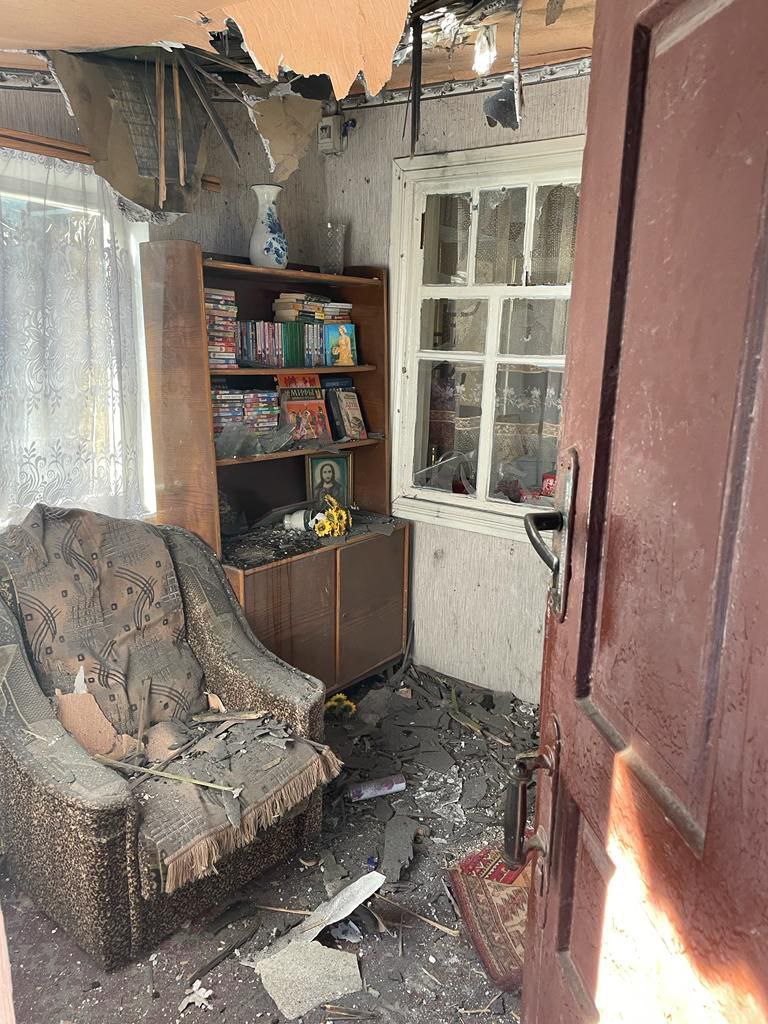 У себе в телеграм-каналі він описує пошкодження кількох будинків (вибиті вікна, посічені осколками снарядів фасади та паркани, зруйновано господарську споруду). Крім того, пошкоджена лінія електропередач.